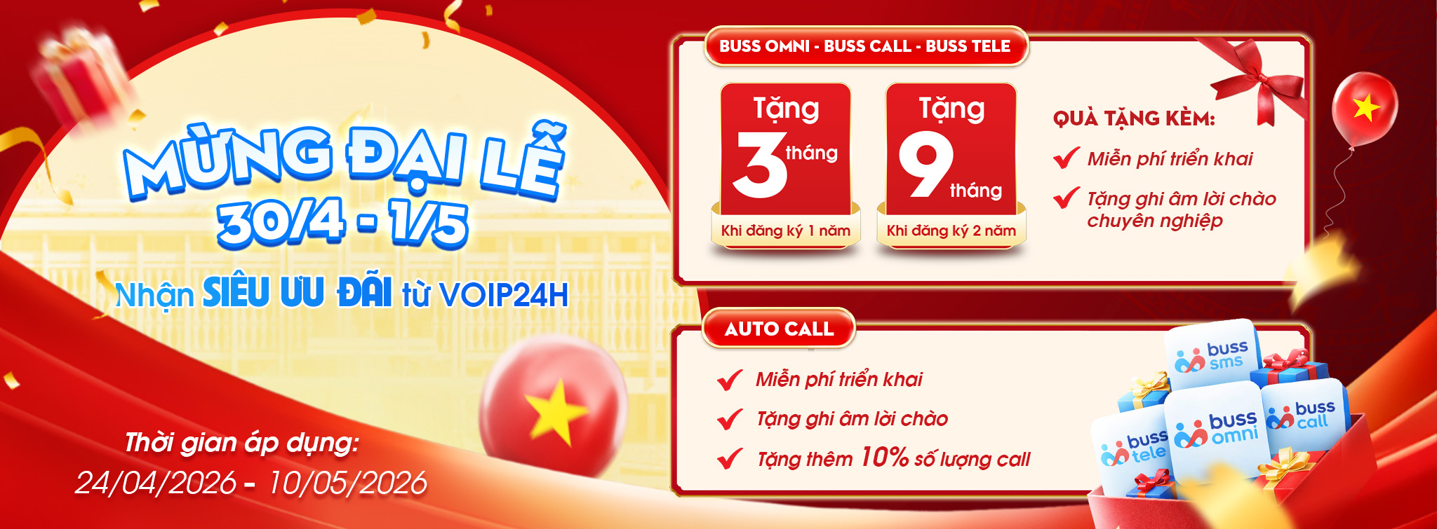 Lưu ý: Chỉ áp dụng trong 14 ngày đầu khi Quý khách hàng chính thức sử dụng dịch vụ Tổng đài Buss Call